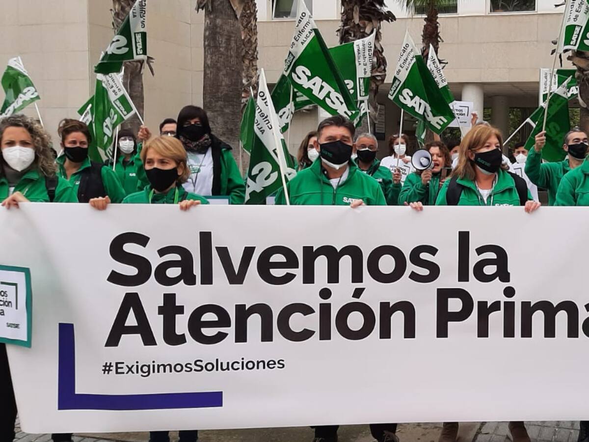Personal de enfermería y fisioterapeutas se concentran ante los centros de salud de Alicante contra la crónica escasez de medios en Atención Primaria
