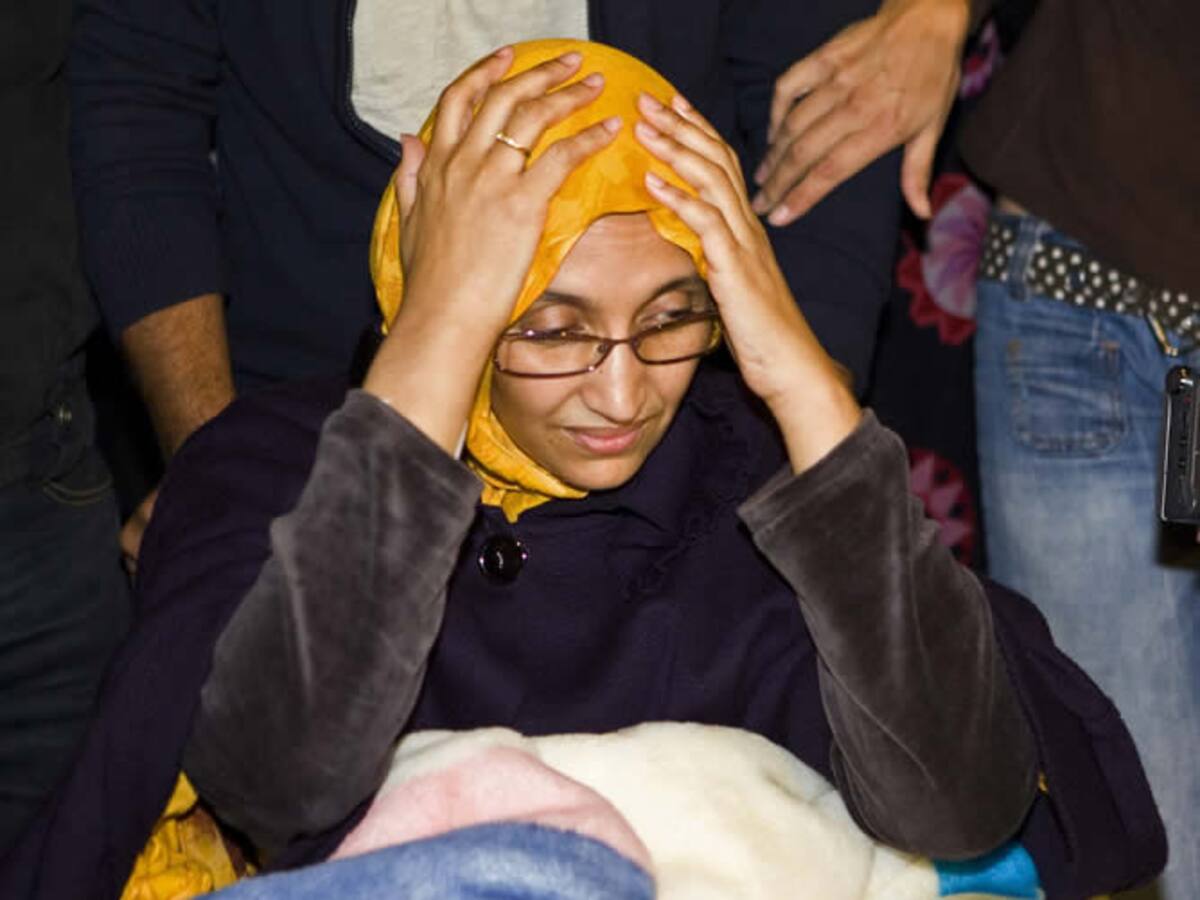 La activista saharaui sale del hospital camino del aeropuerto donde ha cogido el avión de regreso a El Aaiún
