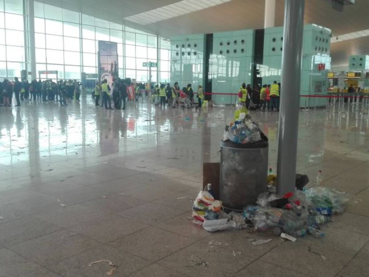 Papeleras repletas y baños cerrados son consecuencia de los cinco días de huelga del servicio de limpieza del Aeropuerto del Prat