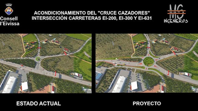 El Consell de Ibiza ha aprobado definitivamente el estudio informativo para el acondicionamiento del cruce de los Cazadores en la carretera de Santa Eulària, uno de los puntos negros de la red viaria de la isla por los accidentes que se producen en este punto.