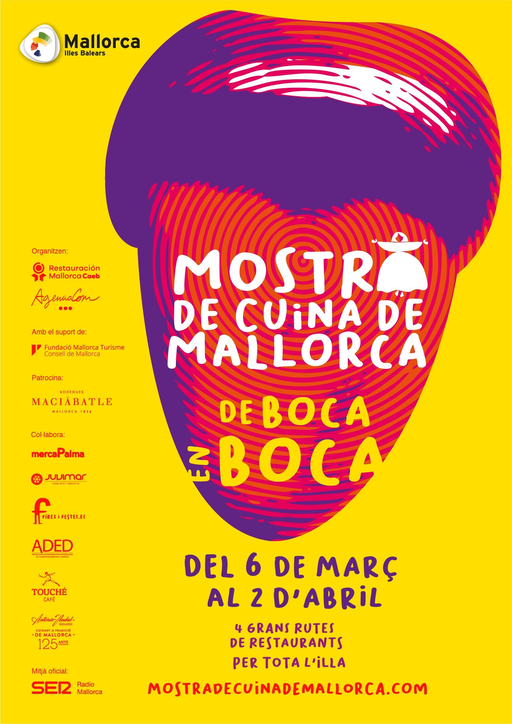 La Mostra de Cuina de Mallorca organizada por Restauración Mallorca Caeb y AgenciaCom cuenta con el apoyo del Consell de Mallorca y la Fundación Mallorca Turisme y el patrocinio de Macià Batle. Además de la colaboración de MercaPalma, Juvimar, Ferias y Fiestas, ADED, Touché Café y Antonio Nadal Destil·leries, y SER Radio Mallorca como medio oficial.