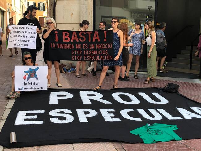 Ahir ja es va celebrar una mobilització a Maó davant d’una de les oficines del banc per frenar aquest desnonament. Els participants a la concentració no dubtaven a criticar el que estava passant.