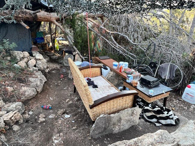 Los vecinos de la zona alertaron a la Policía sobre un posible asentamiento en la zona de sa Talaia y tras realizar las comprobaciones pertinentes y constatar los hechos denunciados por los vecinos, se procedió a desalojar el lugar debido al elevado riesgo de incendio.