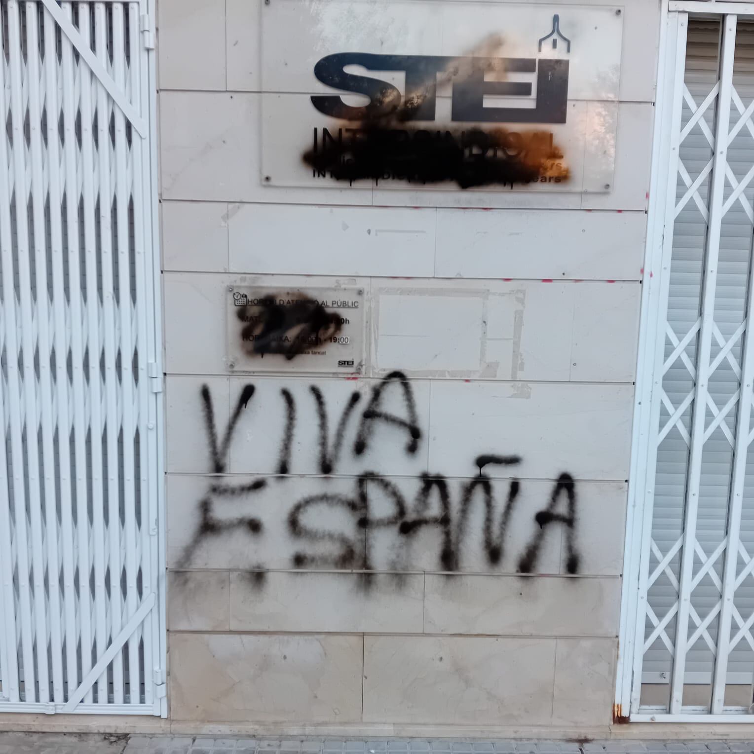 La sede en Palma del sindicato STEI ha amanecido hoy con pintadas en su fachada y un "Viva España" que desde la entidad achacan a su postura contra el plan de libre elección de lengua del Govern por un lado y lo relacionan también "con la concentración ayer tarde convocada por la extrema derecha en la sede del PSIB PSOE y se dieron una vuelta hasta que llegaron a nuestra sede", explica el secretario general del sindicato, Miquel Gelabert.