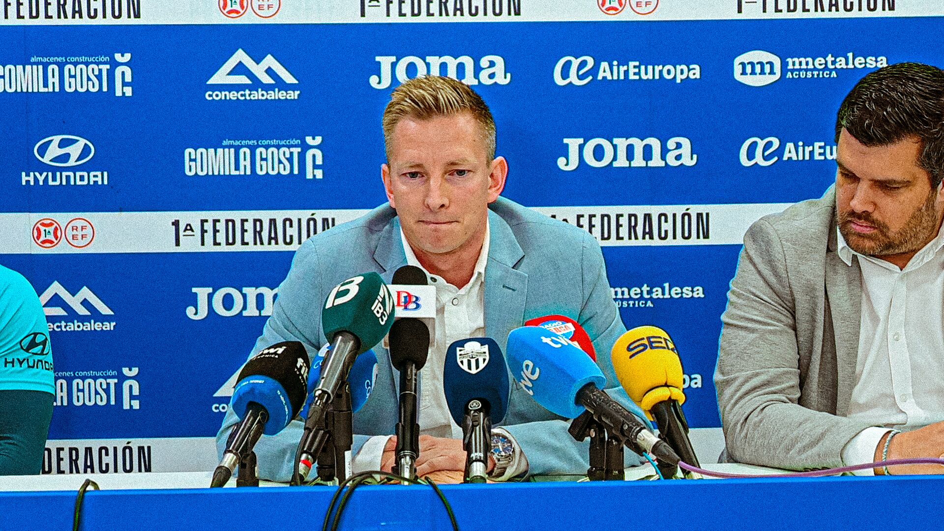 El Director General del CD Atlético Baleares, Patrick Messow, y uno de los capitanes, David Forniés, han comparecido ante los medios de comunicación para valorar la situación actual y, sobre todo, el futuro del club.