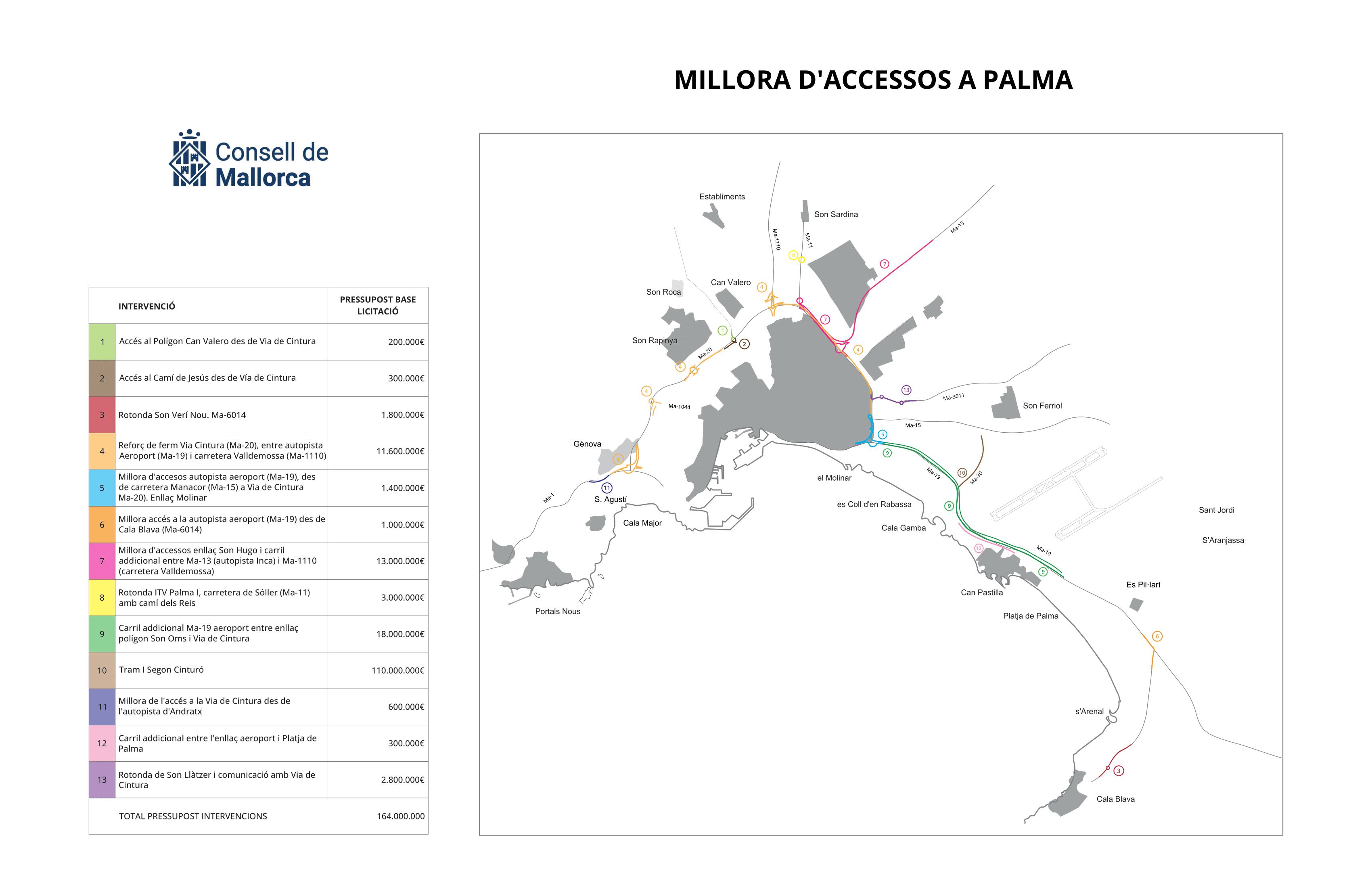 El Consell de Mallorca invertirá 164 millones en 13 proyectos de infraestructuras viales, incluyendo la ampliación de la Vía de Cintura y la construcción de un tramo subterráneo en el segundo cinturón