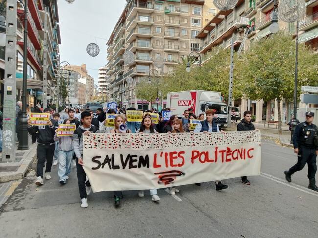 Cerca de medio centenar de alumnos del IES Politècnic de Palma se han manifestado por las calles para exigir el mantenimiento de las líneas de secundaria y bachillerato en el centro. Los estudiantes piden abrir un diálogo con la Conselleria de Educación para preservar todas las opciones educativas que el instituto ofrece actualmente.
