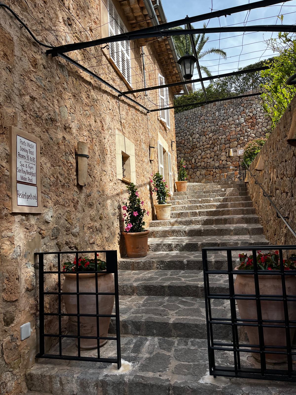 Siguiendo la carretera de Deià llegamos hasta una verja grande y de color negro. En la pared de al lado cuelga el cartel: La Residencia. En medio de este paisaje espectacular de la Serra de Tramuntana encontramos este hotel de lujo. Es como un pequeño pueblo. Cuenta con 70 estancias en su interior, entre habitaciones, suites y una villa. Un restaurante de alta cocina. Un café con vistas a la montaña. Varias piscinas, techadas y también al aire libre. Instalaciones de spa, gimnasio y canchas de tenis. También ofrece la posibilidad de realizar durante la estancia clases de arte y escultura, senderos para recorrer en burro y excursiones.