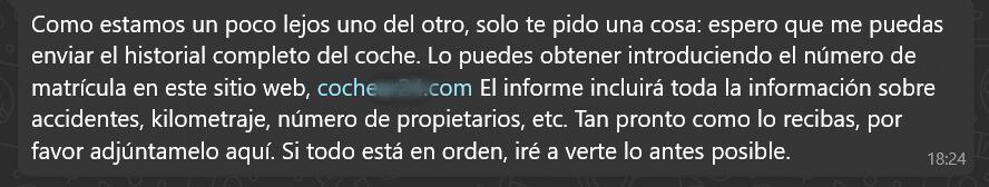 El supuesto comprador gana la confianza de la víctima antes de pedirle un informe de vehículo a través de páginas fraudulentas