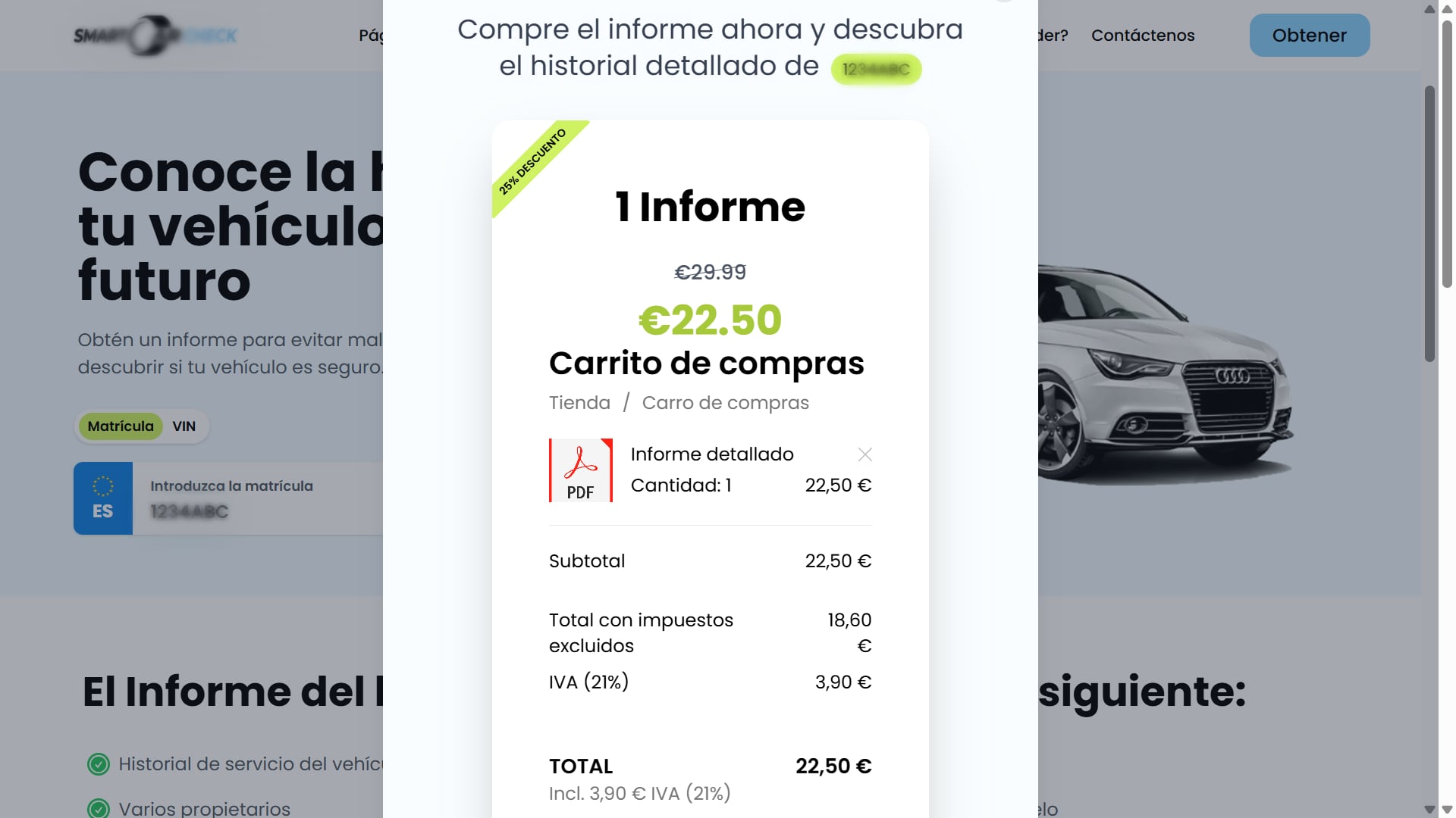 El supuesto comprador gana tu confianza con una conversación creíble, hasta que te pide enviar el historial completo del coche. Te dice que el documento lo puedes conseguir a través de una web de forma muy sencilla y con un previo pago de unos 20 euros. La plataforma online, que va cambiando de dominio web para evitar ser denunciada, tiene una apariencia muy elaborada y un diseño que no levanta ningún tipo de sospecha de ser un fraude.