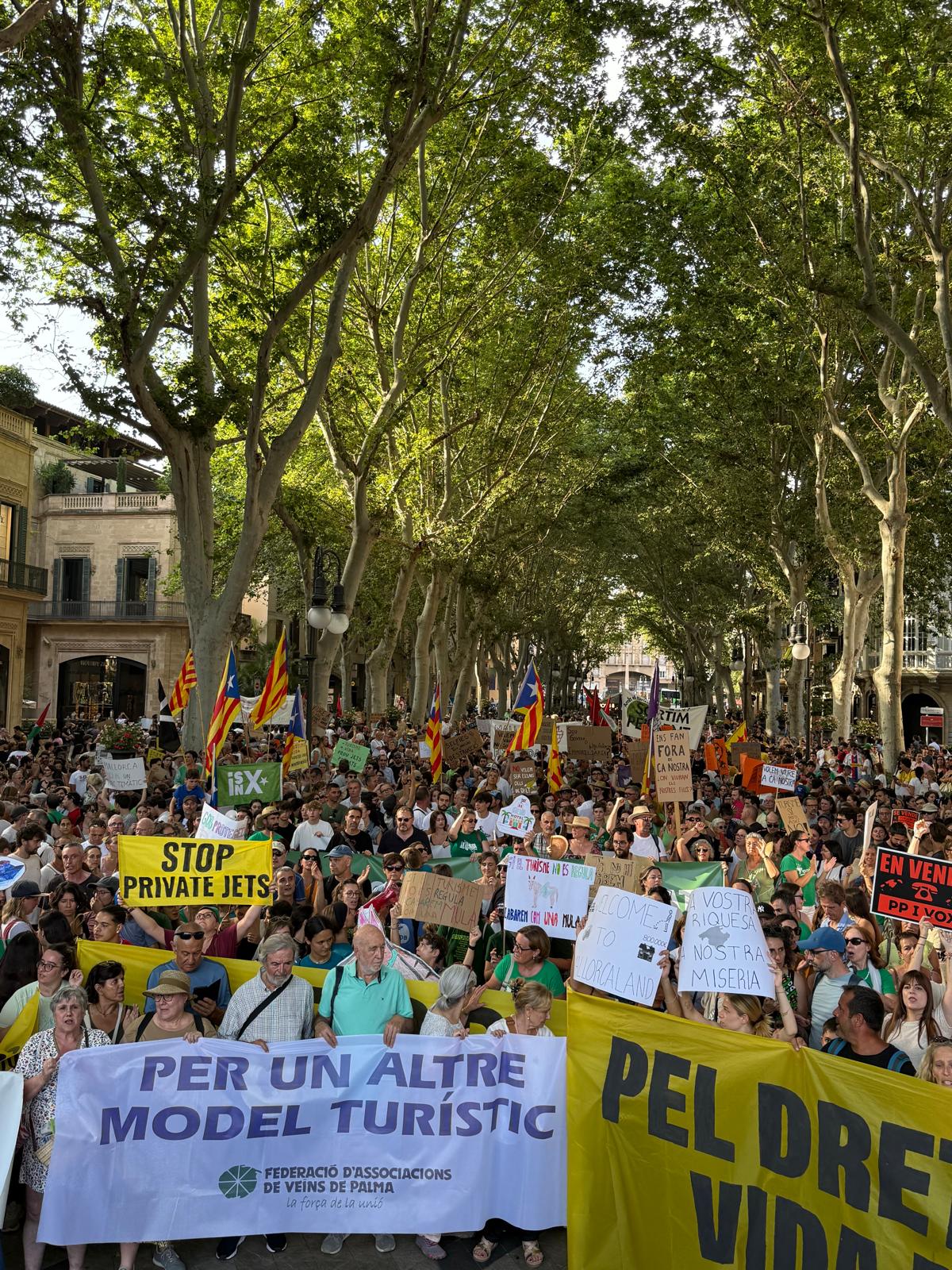 Pancartas, maletas, maquetas de cruceros y cánticos marcaron el ritmo de una movilización que se vivió con un ambiente reivindicativo, pero también con fuerte sentimiento de comunidad. La manifestación tuvo réplicas en todas las Baleares y también en ciudades del sur de Europa.