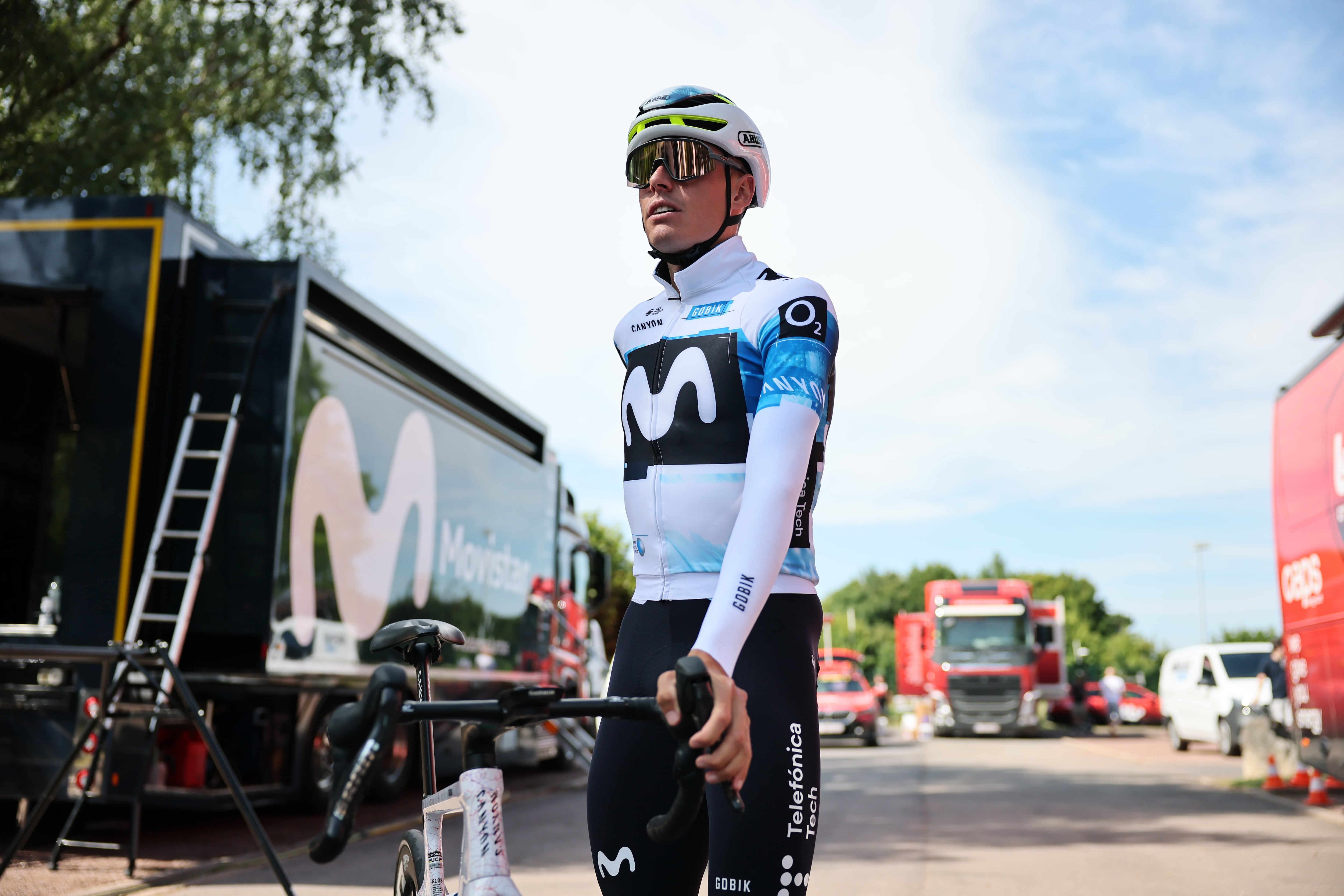 ENGLOS (France), 04/07/2025.- Spanish rider Enric Mas of Movistar Team attends a training session before the start of the Tour de France cycling in Englos near Lille Metropole, France, 04 July 2025. The 112th edition of the Tour de France will start in Lille, France, on 05 July and will finish in Paris, France, on 27 July. (Ciclismo, Francia) EFE/EPA/CHRISTOPHE PETIT TESSON / CHRISTOPHE PETIT TESSON (EFE)