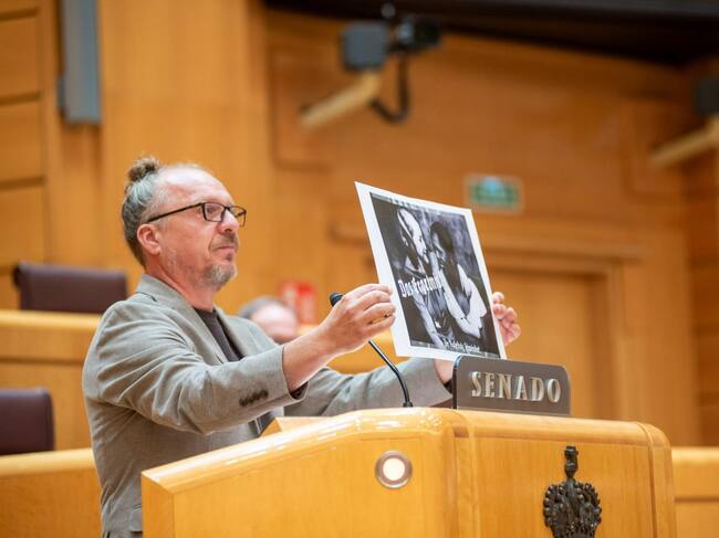El senador ha criticado la campaña publicitaria de Vox en el municipio de Sant Antoni, que ha comparado con la propaganda nazi al mostrar en la Cámara un cartel histórico con el lema "pérdida de orgullo de raza" y señalar su similitud con el difundido por el partido derechista.