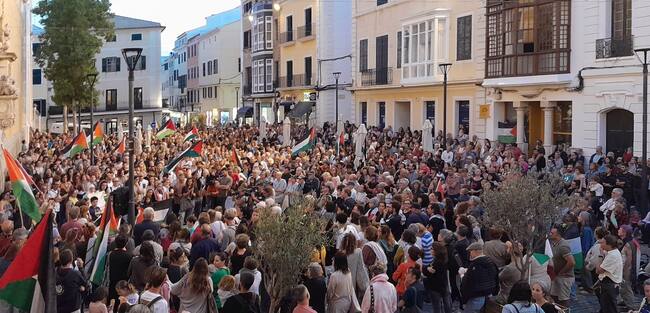 La concentració de Maó, que es va repetir a les principals capitals europees, va constar de la lectura d’un manifests, on es condemnava l’estat genocida d’Israel i es demanava contundència i valentia al govern espanyol.