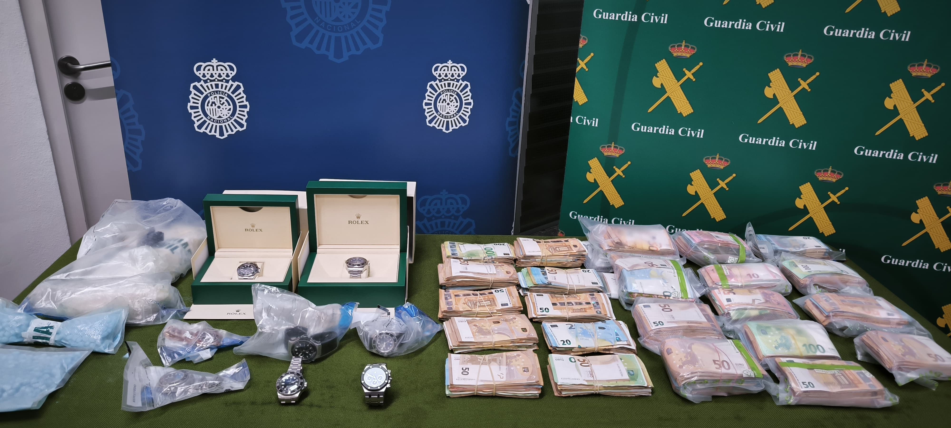 Los arrestos han permitido desarticular la organización y también desbaratar la actividad en pequeños puntos de venta de droga de Mallorca. En los operativos los agentes se han incautado de más de un millón de euros, 987 kilos de cocaína, 2.500 kilos de hachís y más de 1.500 plantas de marihuana. También se intervinieron 16 armas, 16 coches de lujo, relojes, obras de arte, ordenadores, móviles y numeroso material para evitar seguimientos. El portavoz de la Policía Nacional en Baleares, Alejandro Becerra, explica que la organización tomaba muchísimas precauciones para evitar ser detectada.