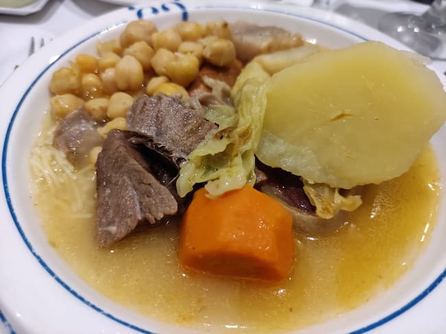 El brou menorquí se serveix en dos temps: primer, una sopa de fideus elaborada amb el brou de cocció; i després, un segon plat amb les patates, els cigrons i la carn del bullit. És un plat calent i reconfortant, propi dels dies freds de l´hivern menorquí.