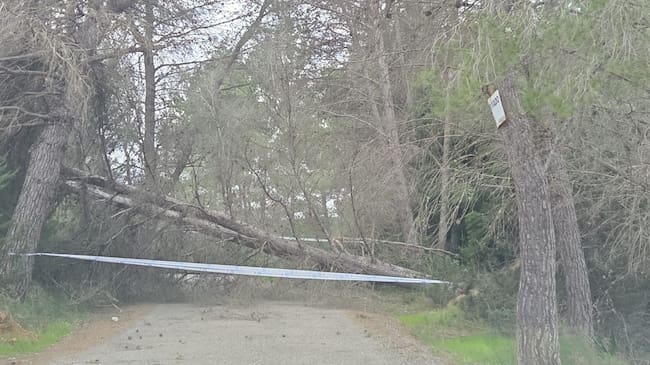 Árbol caído en una carretera secundaria en la zona de Benirràs