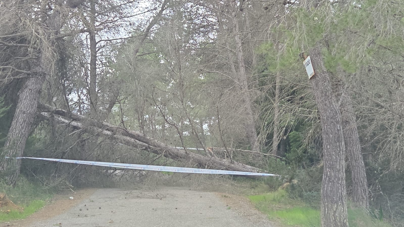 Árbol caído en una carretera secundaria en la zona de Benirràs