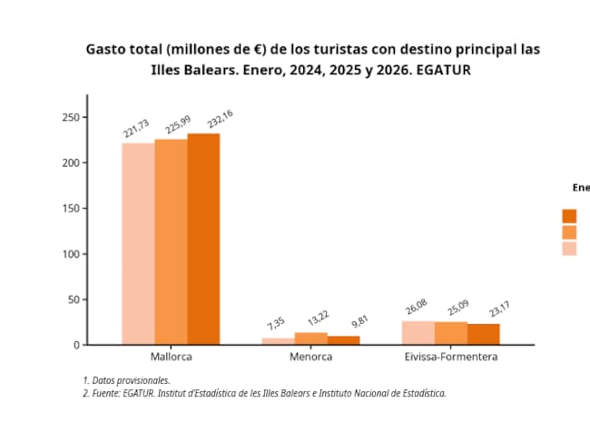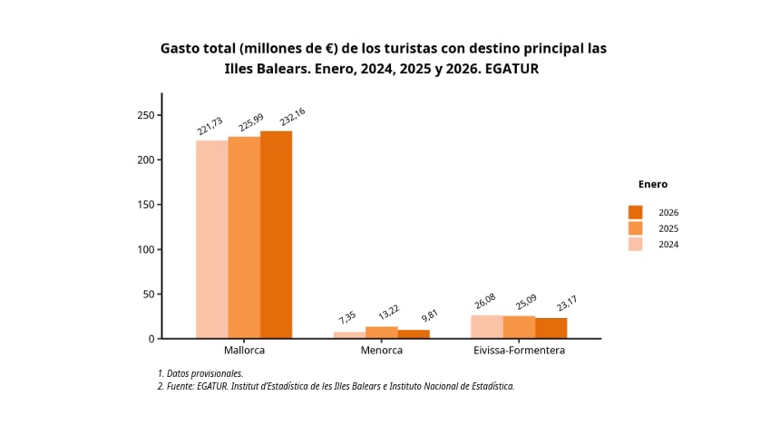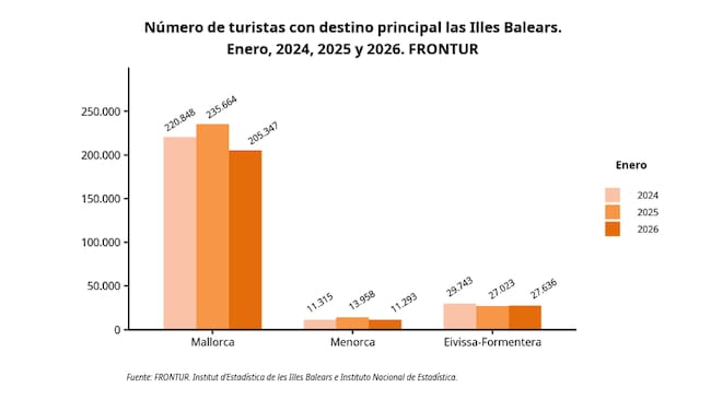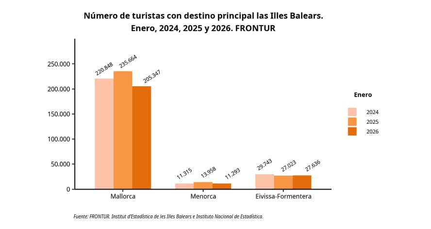 Comparativa del número de turistas hacia Baleares en enero