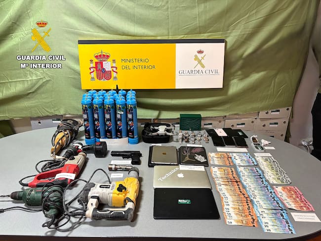 Entre el material incautado destacan diez relojes de lujo, cuatro teléfonos móviles de alta gama, tablets, ordenadores, herramientas y dinero en efectivo, además de básculas de precisión y numerosas dosis de cocaína y hachís preparadas para su venta.