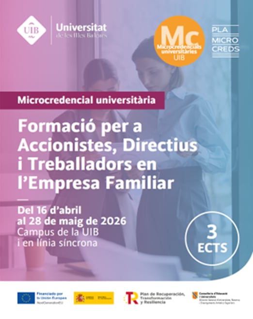 El curso, que tiene un reconocimiento de 3 créditos ECTS —lo que supone una dedicación estimada para el alumno de entre 75 y 90 horas, incluyendo clases y trabajo personal—, se llevará a cabo entre el 16 de abril y el 28 de mayo de 2026 en un formato híbrido, que permitirá a los participantes asistir presencialmente a las clases en el campus de la UIB o conectarse a ellas en directo por internet desde cualquier lugar.