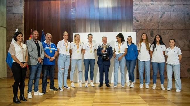 Con varias ausencias motivada por los compromisos internacionales, el técnico Juan Diego García ya se encuentra concentrado con la selección nacional o varias de las jugadoras internacionales ya han regresado a sus países de origen, parte de la primera plantilla y cuerpo técnico le mostraron el trofeo de campeón al presidente regional en un acto sencillo y lleno de gratitud por parte del máximo mandatario regional: "Vivimos un momento especialmente dulce. En el deporte en Tenerife están especialmente dulce. El Haris consigue llevar el voleibol femenino a las más altas cotas del voleibol en España. Quiero destacar que cuando un equipo consigue estos títulos, hay muchas niñas que las quieren emular. El año que viene nos vemos con esta y más copas", comentaba Ángel Víctor Torres.