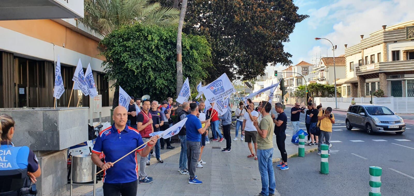 Policías locales de Las Palmas de Gran Canaria se han concentrado a las puertas de las oficinas del Ayuntamiento de la capital grancanaria para reclamar el pago de horas extras realizadas durante 2021 por un importe que asciende a 1,5 millones de euros.