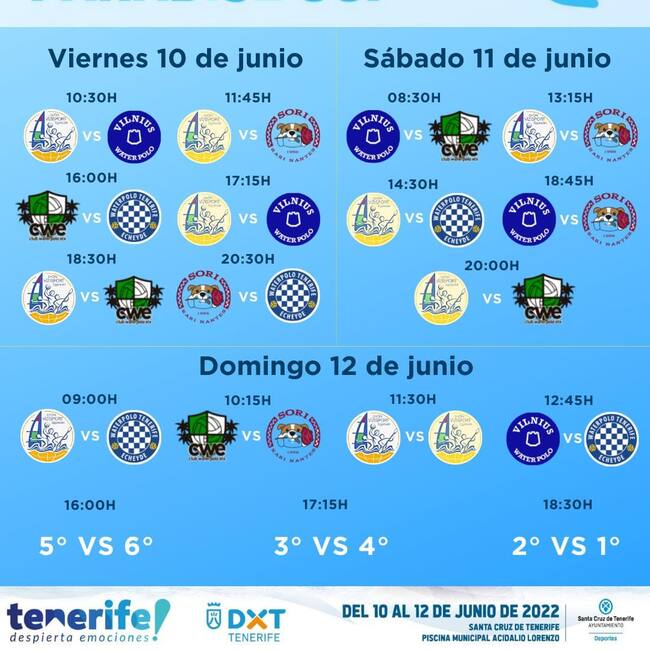 En el torneo, que se celebrará del 10 al 12 de junio en la piscina Acidalio Lorenzo de Santa Cruz, competirán un total de seis equipos procedentes de Hungría, Italia, Lituania, Elche y el representativo de Tenerife, que serán dos equipos del CN Echeyde.