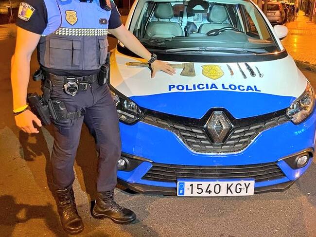 Los agentes de la Unidad Nocturna Especial de la Policía Local de Las Palmas de Gran Canaria interceptaron la madrugada de este miércoles un vehículo en cuyo interior se encontraron tres navajas, un hacha y un cuchillo de cocina.