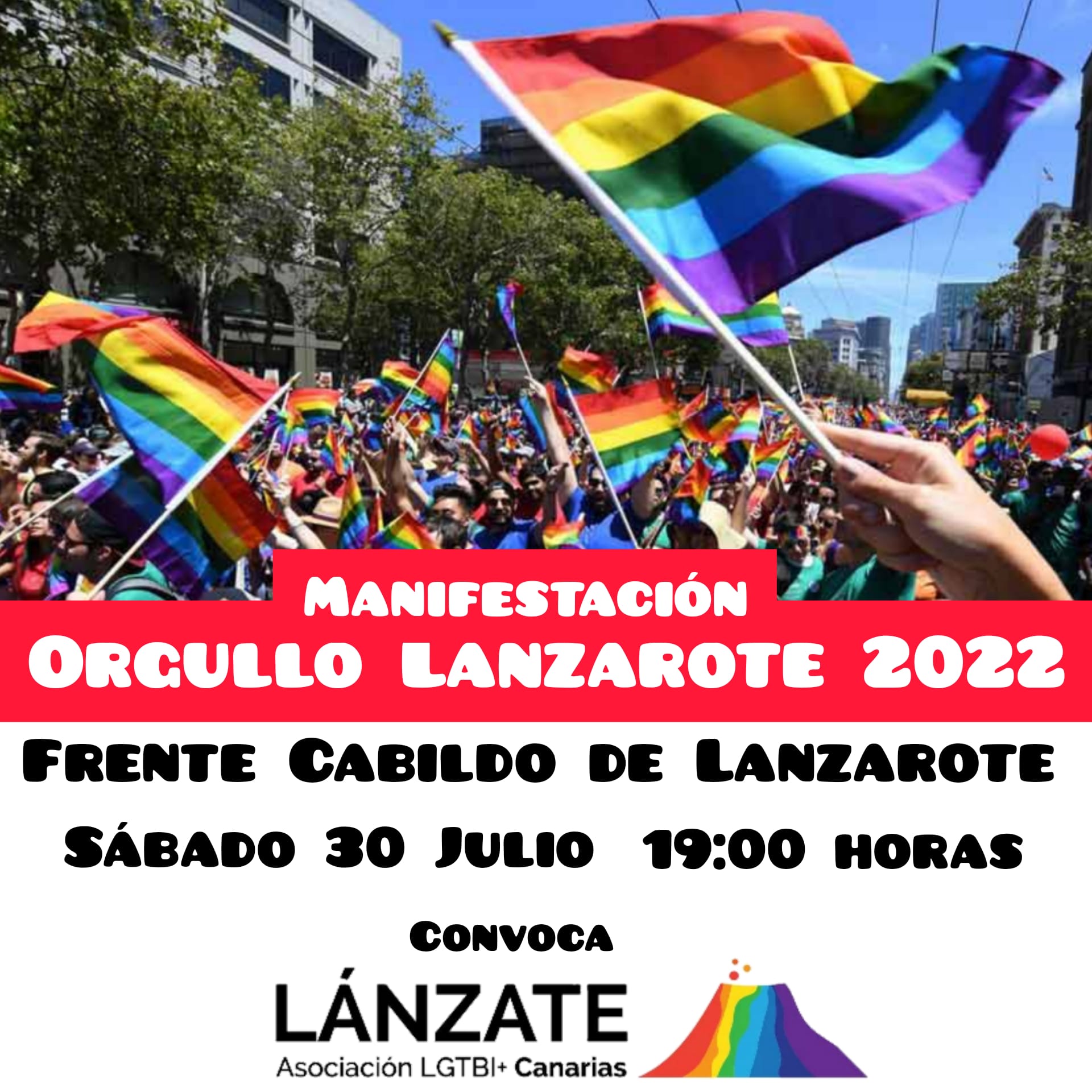 La manifestación tendrá lugar el sábado 30 de Julio a las 19:00 horas frente al Cabildo Insular de Lanzarote como punto de partida y finalizará en la Plaza del Almace, donde se procederá a la lectura del manifiesto a cargo de la entidad promotora con el motivo de “Orgullo Conejero”.