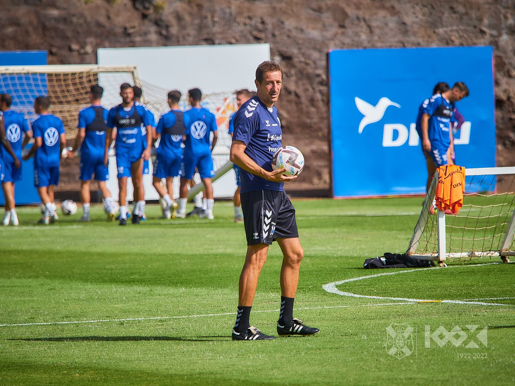 Sesión de 90 minutos de los jugadores de Luis Miguel Ramis, en el Complejo Federativo Juan Padrón Morales (El Mundialito), en lo que fue la vuelta al trabajo del equipo tras disfrutar ayer martes de jornada de descanso. Se realiza, en el momento inicial, una movilidad dinámica individual y rondos como parte de la activación, prosiguiendo con ejercicios de posesión en espacios reducidos y trabajo táctico. La sesión contó con las novedades de los futbolistas de las categorías inferiores Pablo Hernández, Kylian Meire y Marcos Otero, quienes se ejercitaron con el primer equipo junto a los habituales futbolistas del filial que entrenan diariamente con el equipo profesional.