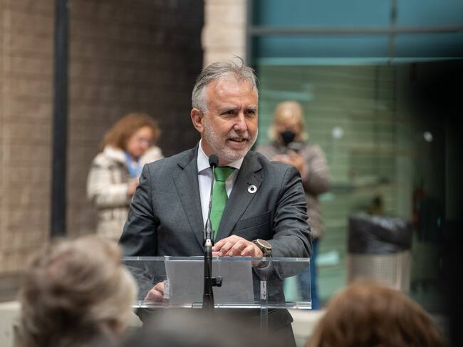 Ángel Víctor Torres, presidente de Canarias, durante la inauguración de una escultura en el Hospital Doctor Negrín de Las Palmas de Gran Canaria / Acfi
