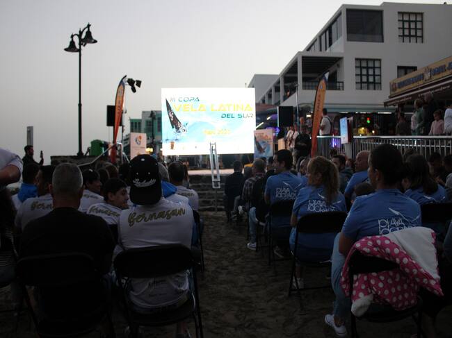 Turistas y residentes, así como la familia de la vela latina canaria, disfrutaban del acto que contó con un recuerdo muy especial para la tripulación del Tritón Clínica Veterinaria Bari después de que se proclamaran campeones de la competición la temporada pasada y se hicieran con la Liga Insular de 5 metros.