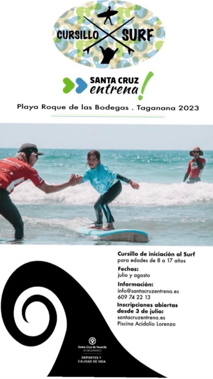 El Servicio de Deportes del Ayuntamiento de Santa Cruz de Tenerife, que dirige Alicia Cebrián, pondrá en marcha por primera vez en el municipio, cursillos de iniciación al surf dentro de la oferta de la campaña deportiva de verano. El objetivo es posibilitar el aprendizaje de esta modalidad a todos los jóvenes, entre 8 y 17 años, promoviendo la iniciación al surf de forma segura, a partir del 3 de julio hasta el 1 de septiembre.
