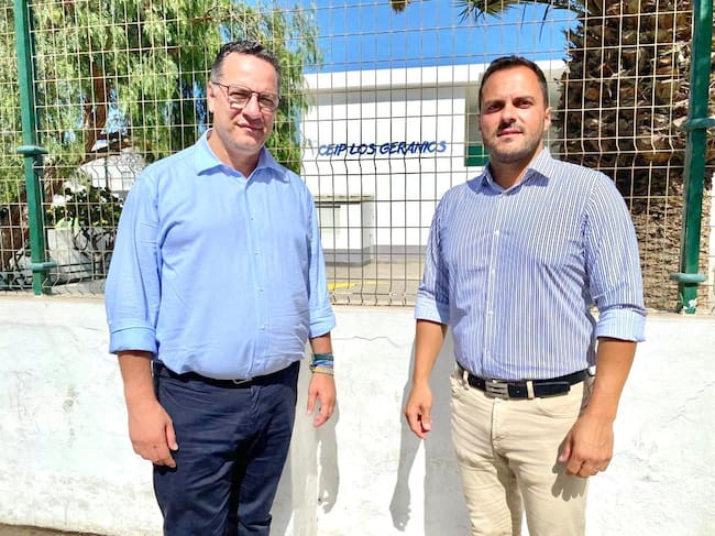 Visita oficial del consejero de Educación del Gobierno de Canarias al Ayuntamiento de Arrecife. El consejero junto al alcalde de Arrecife en el colegio Los Geranios / Cadena SER