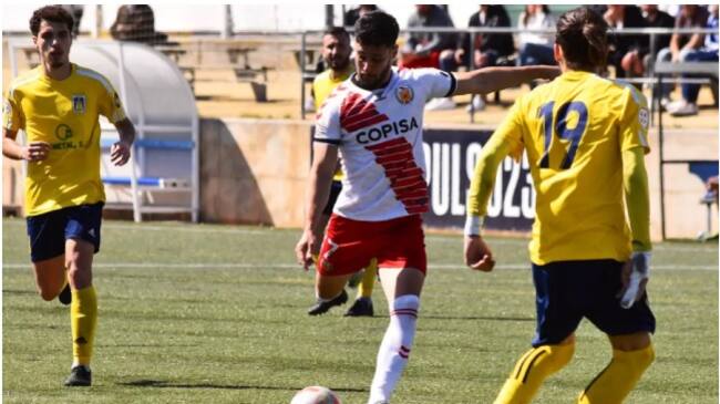 El delantero Adán Cabrera, en un partido con el CE L´Hospitalet. / Unión Sur Yaiza