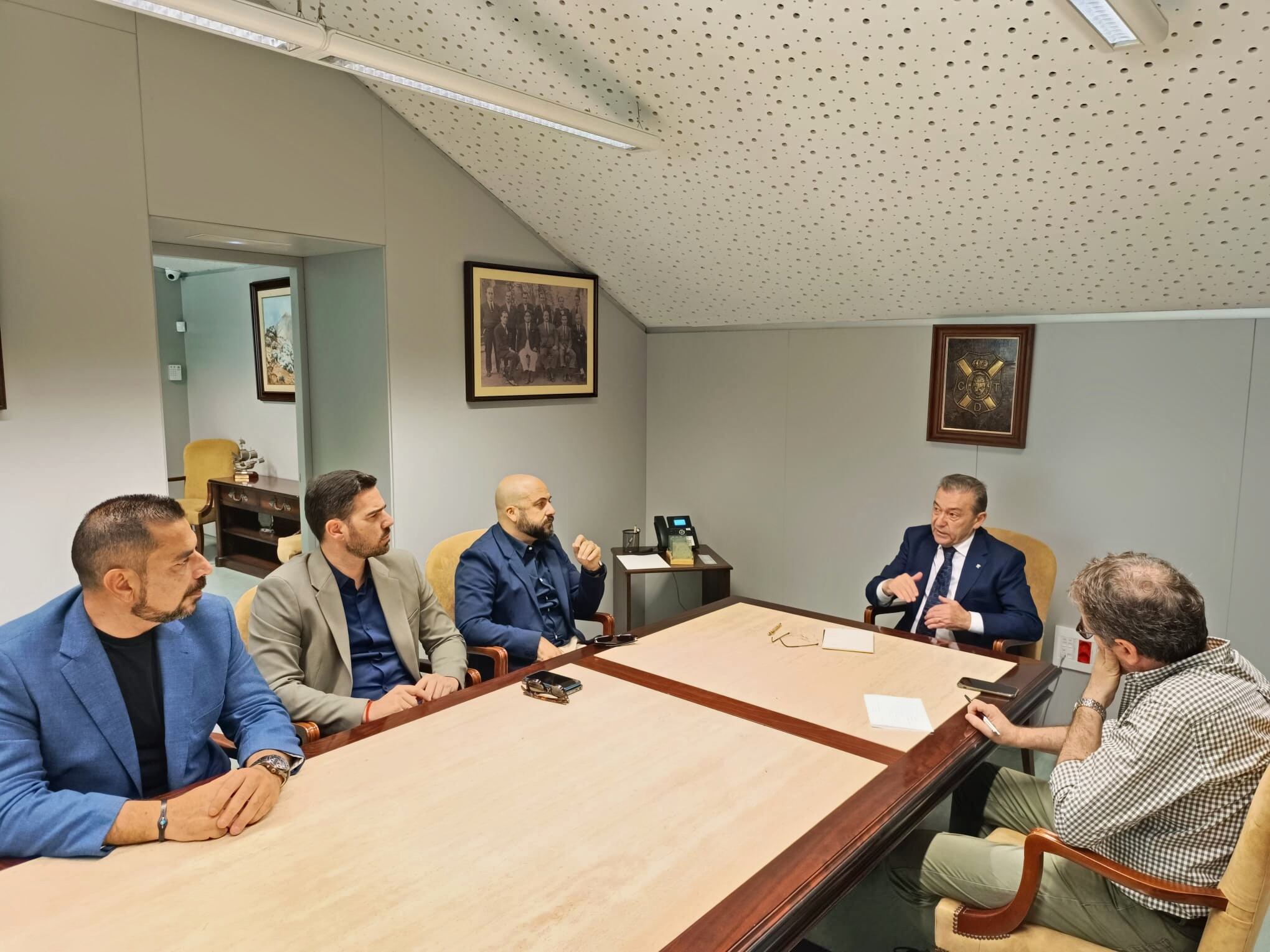 El Ayuntamiento de Arona y el CD Tenerife estrechan sus lazos de unión más allá de lo deportivo. El presidente de la entidad blanquiazul, Paulino Rivero, recibió en el estadio Heliodoro Rodríguez López a los concejales de Deportes, Luis Sierra; Juventud y Participación Ciudadana, Rubens Delgado; y Alexis Gómez, en representación de Servicios Sociales. En el encuentro también estuvo presente Juan Galarza, adjunto a la Presidencia y responsable del área de Proyectos Históricos del CD Tenerife. En la reunión se trataron diversos temas de carácter social, que son transversales a las áreas del consistorio y que tienen al deporte y, especialmente al fútbol, como herramienta como pueden ser la inclusión social de colectivos vulnerables, la discapacidad, la salud mental o la igualdad de género. También se pusieron sobre la mesa temas en los que ambas instituciones hacen un trabajo especial como la protección medioambiental, el reciclaje o la biodiversidad.