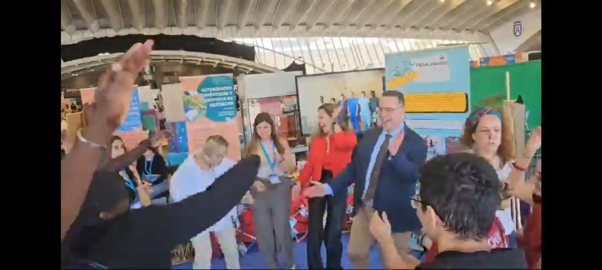 En un vídeo subido a las redes sociales se ve como Poli Suárez, consejero de Educación, y Jessica de León, consejera de Turismo y Empleo, bailan con un ritmo frenético junto a otros jóvenes que participaban en el campeonato.