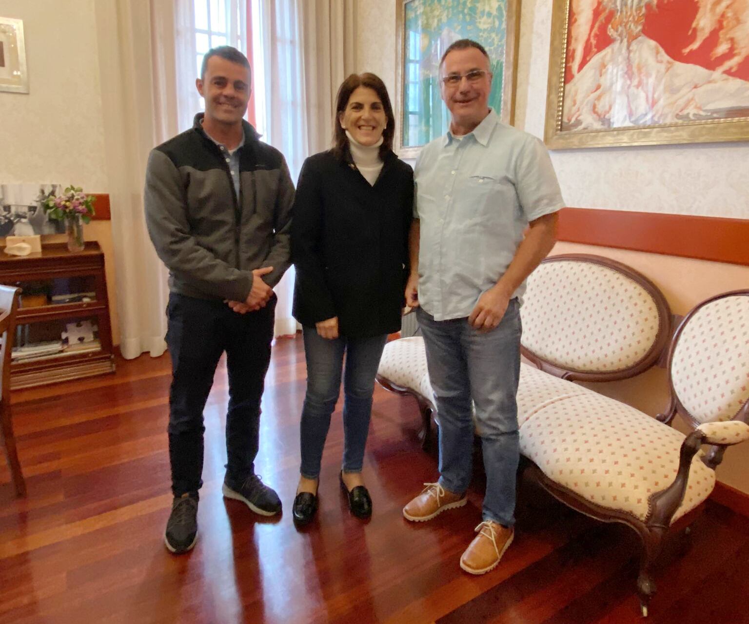 La Escudería Villa de Adeje, encabezada por Poli Delgado, continúa con su ronda de reuniones para planificar el desarrollo del rallye. En esta ocasión, el máximo responsable del club organizador se entrevistó con la alcaldesa de Guía de Isora, Ana Dorta, y con su concejal de Deportes, Oliver Afonso, con quienes cerró un acuerdo de colaboración que facilitará el paso de la prueba por el municipio. Tras el encuentro, Delgado resaltó la buena sintonía existente entre el comité organizador del Rallye Villa de Adeje y el consistorio isorano, así como “la predisposición por parte de sus responsables para apoyarnos en todo lo posible para que el evento deportivo sea un éxito”, comentó a los medios oficiales del club.