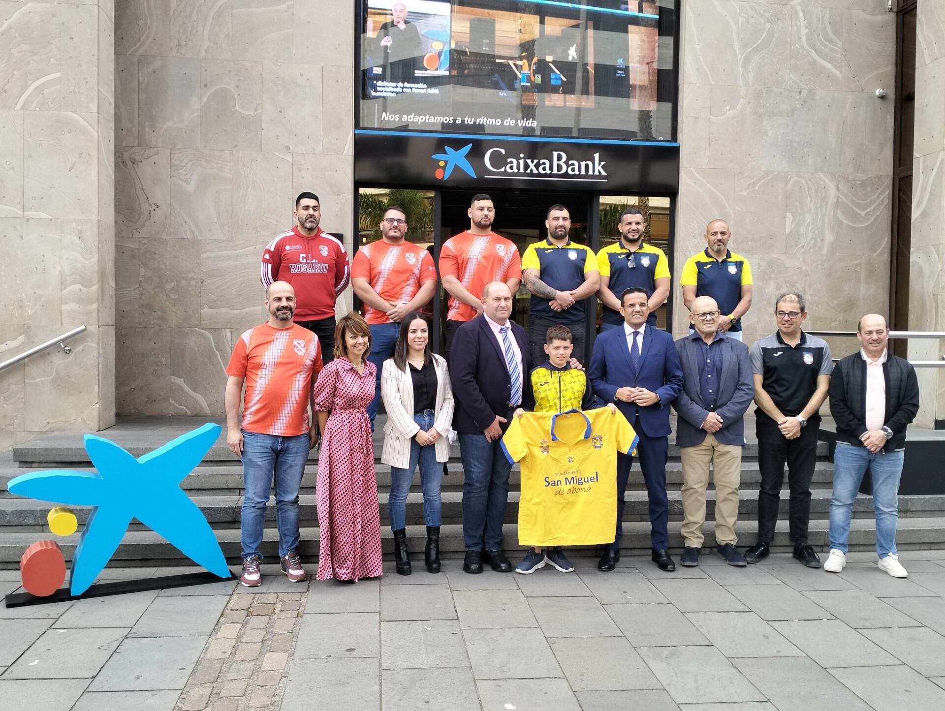 La final de la máxima categoría de la lucha canaria en la isla de Tenerife ha sido presentada este miércoles en la sede central del principal patrocinador (oficina ‘all in one’) de la competición, La Caixa. Con la presencia del presidente de la federación insular de lucha, Jeremías Hernández, el director comercial de Red de Caixabank, Miguel Ángel García, la concejala de deportes del Ayuntamiento de Tegueste, Elena Perdomo y representantes de los clubes presentes en la gran final, el Club de Lucha Rosario de Valle Guerra (La Laguna) y el Club de Lucha Chimbesque (San Miguel de Abona), se dio el pistoletazo de salida a un evento que se celebrará el próximo viernes 8 de marzo desde las 21:00 horas en el Terrero Mencey Tegueste. Con un aforo de 2.700 (lo que permite el plan de seguridad), las entradas están ya vendidas en su totalidad, lo que garantiza un gran ambiente en la fiesta del deporte vernáculo en la isla de Tenerife.
