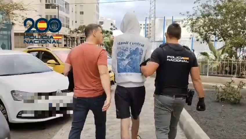Imágenes de la detención del acusado de cometer 16 robos en establecimientos de la capital de Lanzarote. / Cadena SER