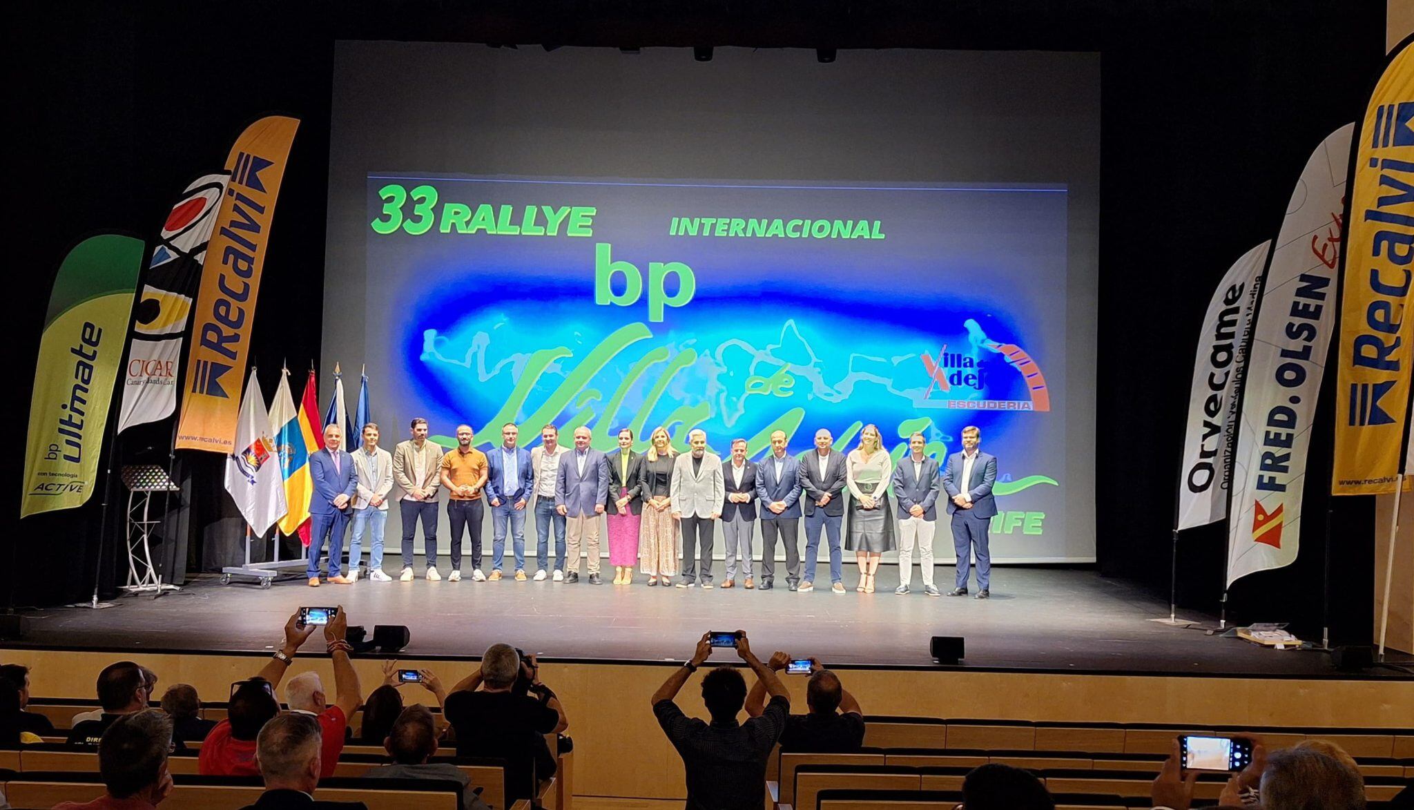 En la presentación se dieron cita diversas autoridades políticas y deportivas, algunas de las cuales intervinieron durante el acto, como los concejales de Deportes de Arico, Guía de Isora, Granadilla, Vilaflor de Chasna, Santiago del Teide y Adeje; el alcalde de San Miguel de Abona, Arturo González; su homónima en Arona, Fátima Lemes; la consejera de Deportes del Cabildo de Tenerife, Yolanda Moliné; el director general de Deportes del Gobierno de Canarias, José Francisco Pérez; además de los los presidentes de la Real Federación Española de Automovilismo (RFEdA), Manuel Aviñó; de la Canaria (FCA), José Ángel Batista; de Las Palmas (FALP), Miguel Ángel Domínguez; y de la de Santa Cruz de Tenerife (FIASCT), Francisco Negrín. El encargado de cerrar el acto fue el alcalde de Adeje, José Miguel Rodríguez Fraga, quien recordó la firme apuesta que desde el consistorio se ha hecho por el rallye que lleva el nombre del municipio desde su nacimiento, hace ya más de tres décadas.