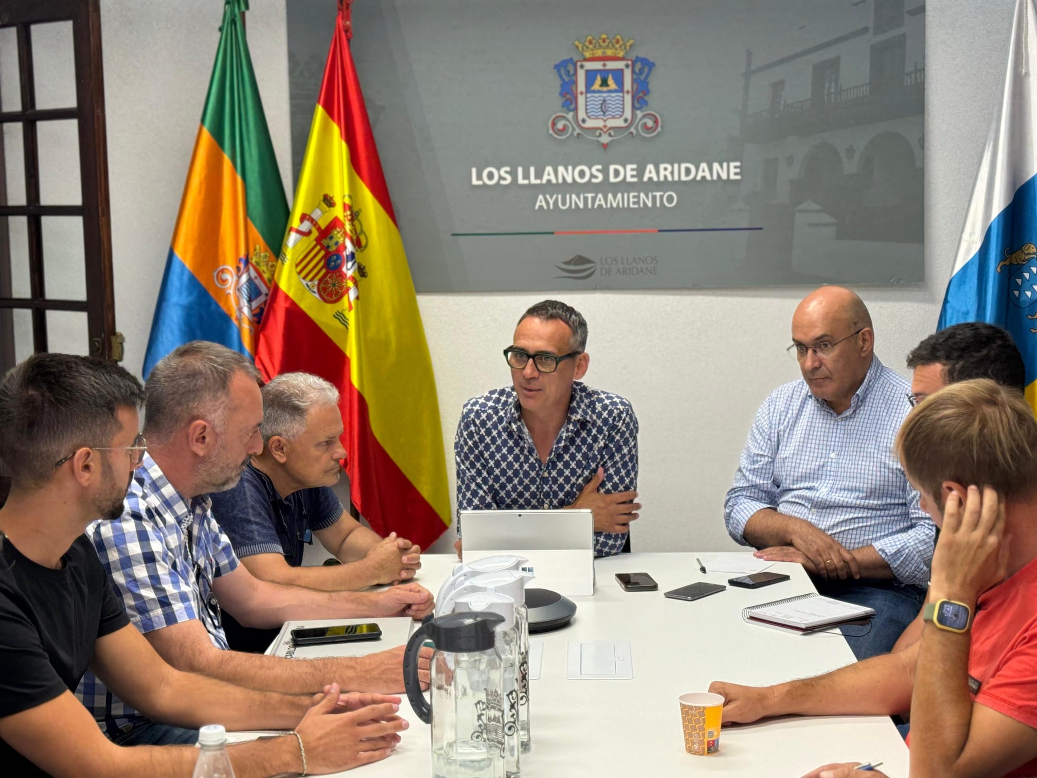 El alcalde, Javier Llamas, mantuvo una reunión con el director general de Agricultura del Ejecutivo autonómico, Javier Gutiérrez Taño; el consejero de Agricultura de la Corporación insular, Alberto Paz; concejales de la institución municipal y representantes del sector para analizar futuras actuaciones, aprovechando la puesta en marcha de los decretos agrícolas por parte del Gobierno de Canarias.