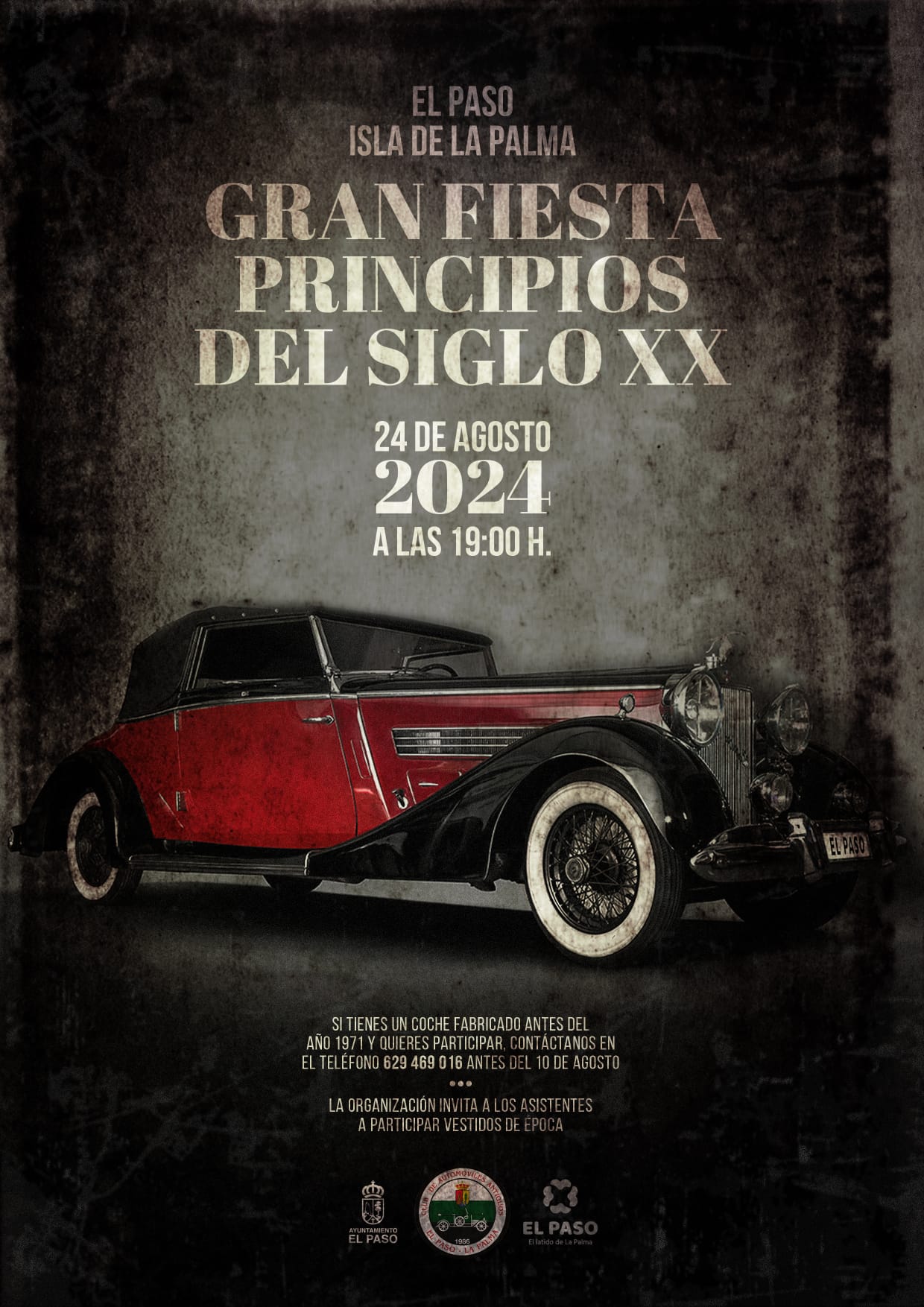 El Ayuntamiento de El Paso, en el marco de las Fiestas de la Bajada de la Virgen del Pino 2024, celebra la Gran Fiesta de Principios del Siglo XX. El evento, que tendrá lugar el sábado, 24 de agosto, transporta al municipio al pasado gracias a la buena música, vestidos de época y la joya de la corona: el desfile de más de 100 coches clásicos y antiguos del Club de Automóviles Antiguos ‘El Paso’. El alcalde Eloy Martín asegura que la Gran Fiesta de Principios del Siglo XX es uno de los eventos más esperados durante la Bajada. “El Encanto y la nostalgia de décadas pasadas llenarán las calles de nuestro municipio gracias al ambiente que generan los coches, perfectamente cuidados y organizados. La labor del Club de Automóviles Antiguos ‘El Paso’ es encomiable y le debemos mucho en el crecimiento de esta celebración. Esperamos verlos a todos en El Paso este sábado”, afirma.