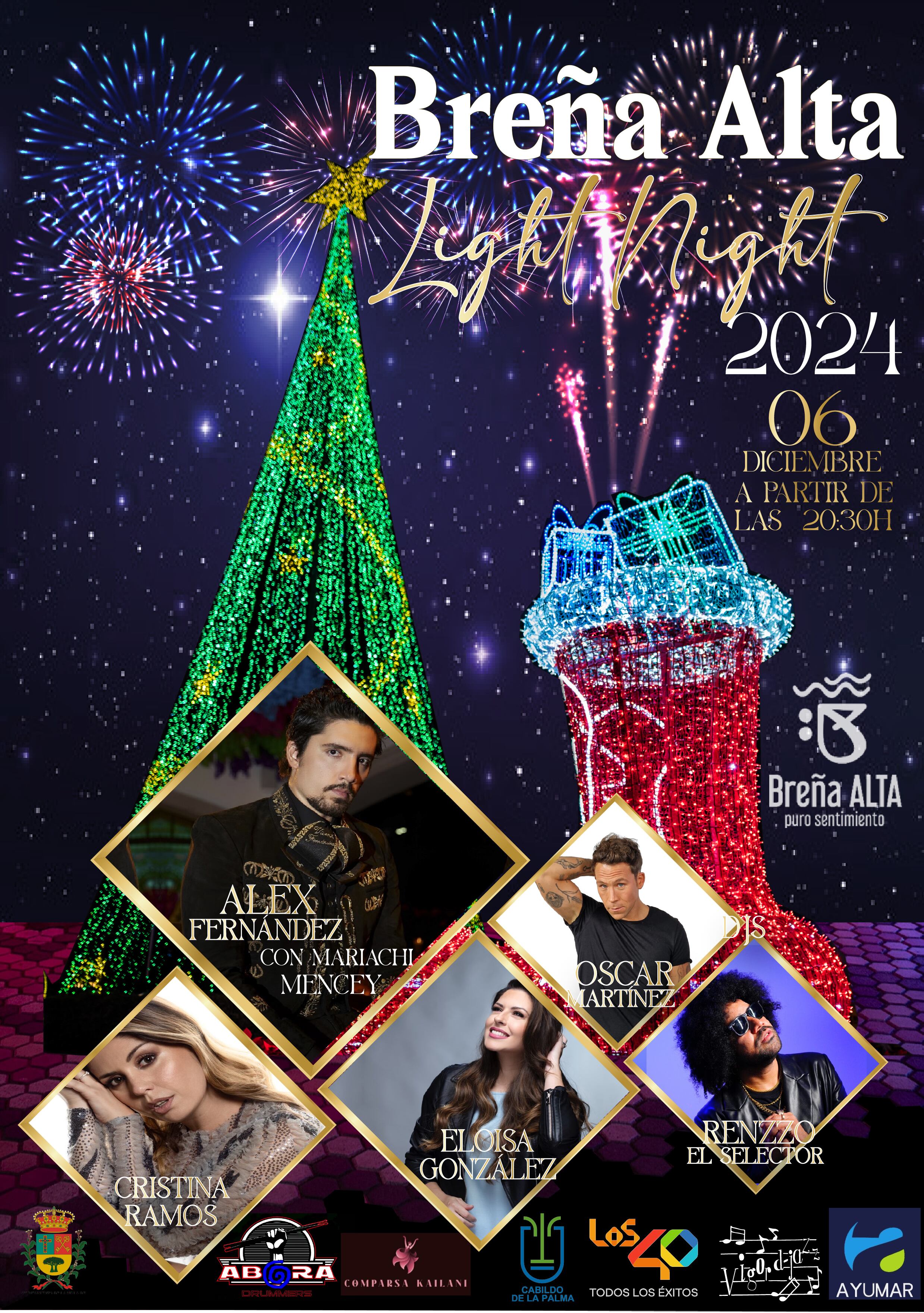 La tercera generación de la saga de los Fernández, aterriza en Europa y en Breña Alta, con Álex Fernández que actuará junto a Mariachi Mencey de Tenerife, la cantante Cristina Ramos será una de las encargadas de hacer disfrutar a los presentes con su voz, la cual le ha permitido ganar varios concursos a nivel nacional y Oscar Martínez, DJ oficial de Los 40, y Renzzo El Selector, habitual en festivales importantes a nivel regional, serán los DJ con los que contará el acto para poner la música y alegrar la noche a los asistentes al encendido de nuestro municipio.