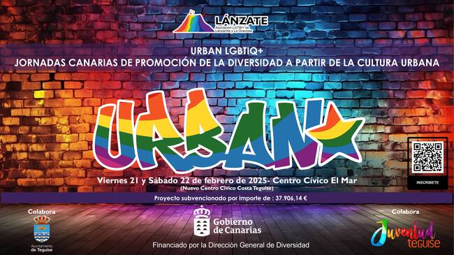 Organizado por la Asociación Lánzate, con la financiación de la Dirección General de Diversidad del Gobierno de Canarias y la colaboración de la Concejalía de Juventud del Ayuntamiento de Teguise, URBAN LGTBIQ+ se celebrará en el Nuevo Centro Cívico El Mar, en Costa Teguise.