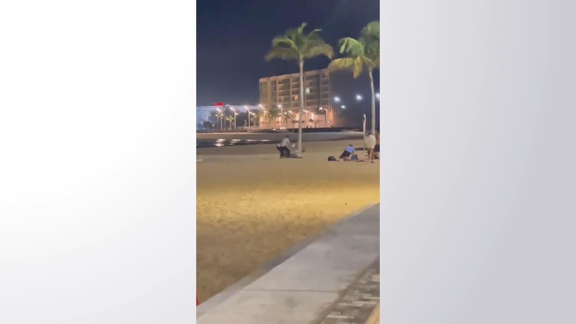 Ya sobre la arena, varias personas golpean con saña a un hombre que permanece tirado en el suelo e incluso alguno de los agresores propina golpes con cuchillos de grandes dimensiones.