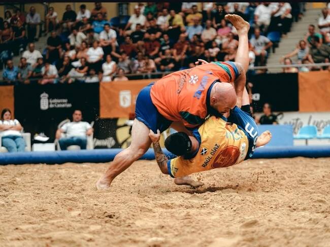 A continuación, el destacado C del Chimbesque Carlos Jerez protagonizó una bella agarrada con Juan Alberto Ramírez, a quien tumbó en la tercera luchada para sellar el 4-8 para el club de San Miguel de Abona que se veía cerca del cetro regional. Ante la posibilidad de que se escapara la final, el Saladar de Jandía mandó a la arena a su puntal A, Miguel Hernández, quien con suma facilidad se deshizo de Jonay Hernández para el 5-8 y comenzar una remontada que continuó Kilian León tras un toque patrás y una tumbada sobre el juvenil Lamine Dieng (6-8).