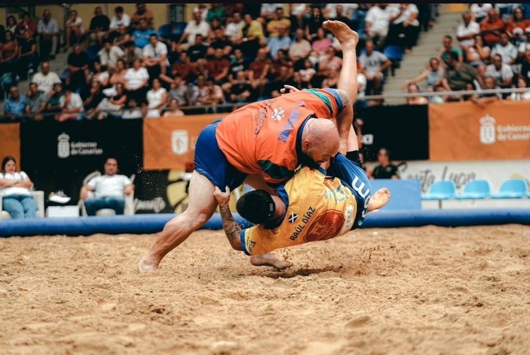 A continuación, el destacado C del Chimbesque Carlos Jerez protagonizó una bella agarrada con Juan Alberto Ramírez, a quien tumbó en la tercera luchada para sellar el 4-8 para el club de San Miguel de Abona que se veía cerca del cetro regional. Ante la posibilidad de que se escapara la final, el Saladar de Jandía mandó a la arena a su puntal A, Miguel Hernández, quien con suma facilidad se deshizo de Jonay Hernández para el 5-8 y comenzar una remontada que continuó Kilian León tras un toque patrás y una tumbada sobre el juvenil Lamine Dieng (6-8).