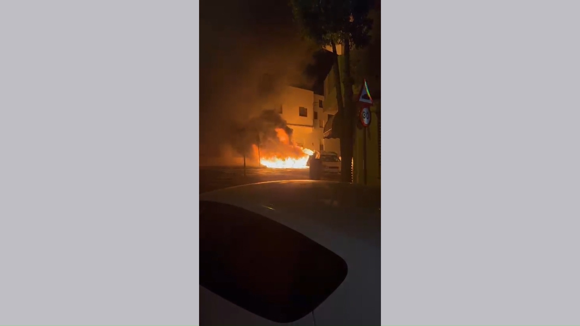 Incendio de contenedores en la calle Juan Negrín de Arrecife, capital de Lanzarote. / Cadena SER